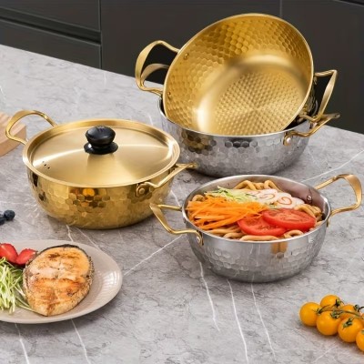 [Набор посуды из нержавеющей стали] 3 предмета, набор посуды из нержавеющей стали | многофункциональные суповые кастрюли с двумя ручками с крышками, корейская горячая кастрюля, кастрюля для пасты и морепродуктов для индукционной плиты, кемпинга на открытом воздухе - безопасны для посудомоечной машины, нержавеющая сталь 304