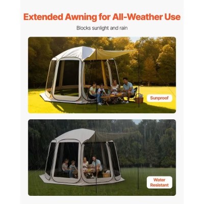 покрытие > бытовая техника > Павильонная палатка на 10-12 человек VEVOR | Выдвижная павильонная палатка размером 12×11 футов с удлиненным навесом, переносной павильон с сумкой для переноски, сетчатыми стенками, для внутреннего дворика, заднего двора и мероприятий на открытом воздухе, бежевая