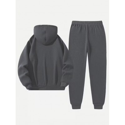 [Мужской комплект худи и спортивных штанов] 2 предмета, мужской комплект худи с парижскими мультяшными принтами и буквами и спортивных штанов | худи, свободная посадка, слегка тянущаяся ткань, с принтом для осени/зимы
