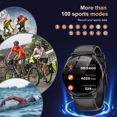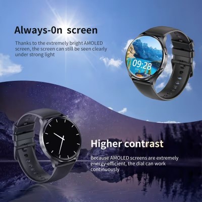 [Спортивные умные часы AMOLED] Ультратонкие умные часы AMOLED, подходят для мужчин и женщин | спортивный дизайн, круглый циферблат из алюминиевого сплава, силиконовый ремешок, беспроводные звонки, зарядка через USB, удобные и комфортные для ношения, стильные и модные