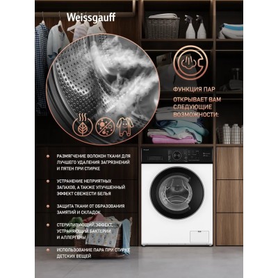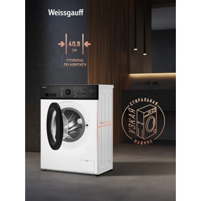 покрытие > бытовая техника > Weissgauff Стиральная машина УЗКАЯ WM 4506 LED (Модификация 2025 года), глубина 40.8 см, С ПАРОМ, Инвертор, Загрузка 6 кг, 1000 оборотов, 16 программ, Быстрая стирка 15 мин, Очистка барабана, белый, черный